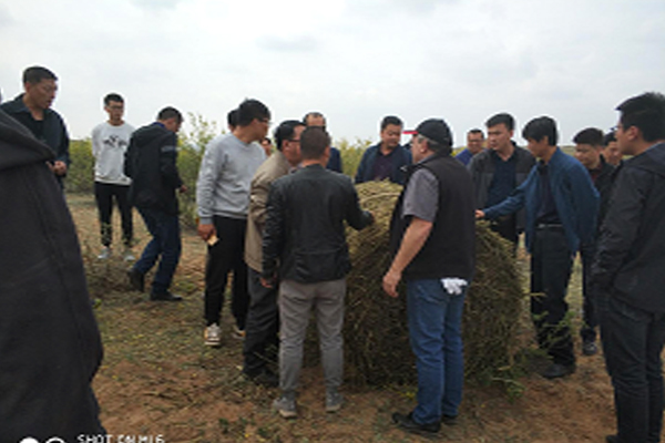 4月24日,綠友集團引進的中國首臺加拿大安德森硬桿打捆機,前往寧夏吳忠市鹽池縣、紅寺堡區等地做檸條平茬收割演示。
