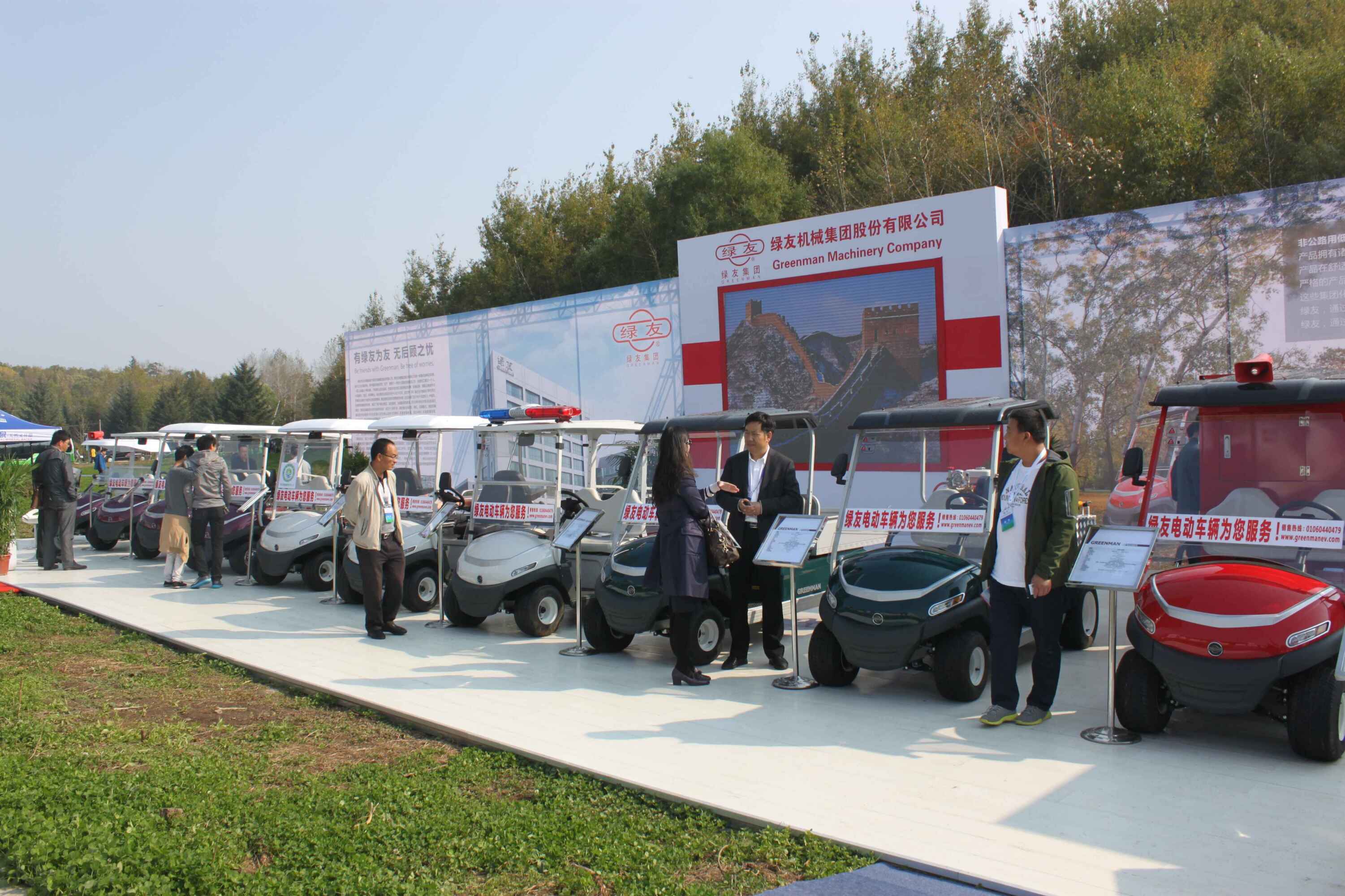 此次森林旅游節期間全國各省市設立了大型展臺展示推薦各自省份森林旅游資源和招商引資項目。與林業和旅游業行業密切相關的企業全方位展示公司形象和產品。以“圍繞綠色做文章,圍繞綠色謀發展”的綠友集團盛裝參展,展臺面積280平方米,展品包括林業樹木處理設備、草坪養護設備及Greenman 全系電動車輛登臺亮相。綠友集團的展臺及高品質產品引人駐足,蒞臨展位的各級領導仔細了解產品特性和功能,并在展臺表達了合作意向。全國政協副主席羅富和、國家林業局局長張建龍、吉林省副省長隋忠誠等領導蒞臨綠友展臺,綠友集團高管李玉潔詳細向羅主席等領導介紹了綠友集團和主要產品,羅主席等領導對綠友集團對于綠色產業的支持表達了肯定,對綠友集團堅持走自主研發生產之路表示贊許和鼓勵