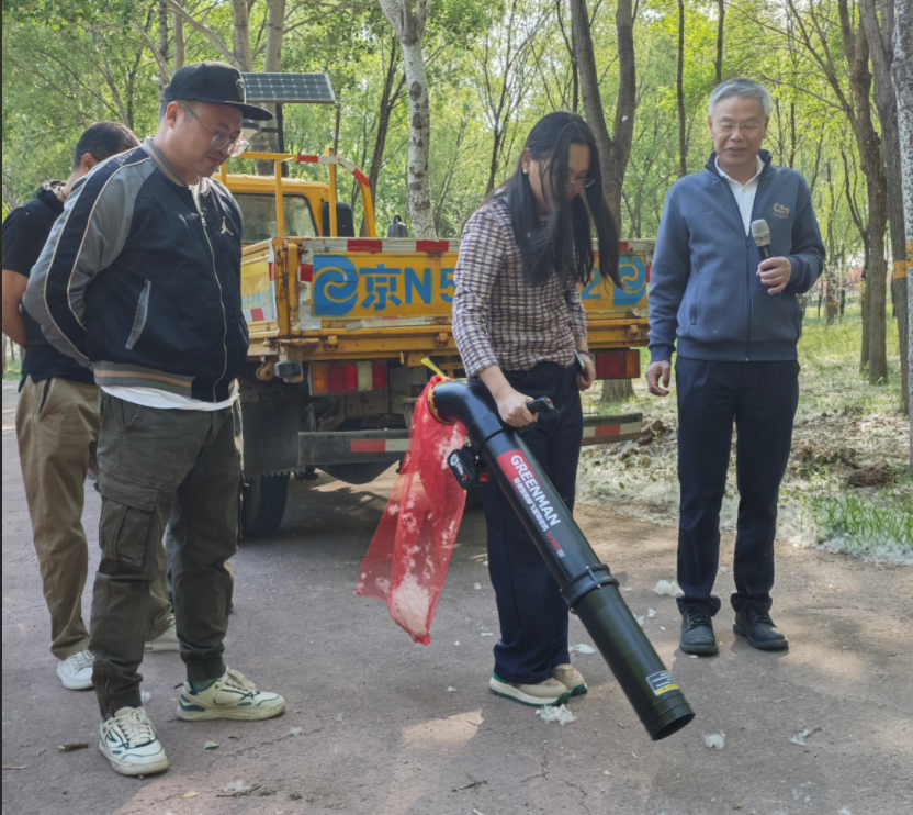 2025年4月29日,北京市園林綠化局在通州區舉行楊柳飛絮防治現場會。會上,北京市園林綠化局二級巡視員王小平介紹了北京市楊柳飛絮防治方案及取得的階段性成果,特別是對綠友集團依托北京市科委項目完成的兩款防治產品-電動樹干打孔注藥機ZYJ15D和輕便型楊柳飛絮吸絮機SJ300D在飛絮防治中的作用表示高度認可。綠友集團總裁李敏現場介紹了兩款產品的研發情況、工作原理及產品特點,并由工作人員現場進行了實際操作演示,得到了參會領導、同行及使用單位的一致認可。現場會同時進行了首批輕便型楊柳飛絮吸絮機SJ300D的集中發放儀式,來自包括中央黨校園林處、北海公園、頤和園、通州區園林綠化局、通州區城管委、國家植物園、北京安貞醫院、經開區生態環境管理局、西城環衛等在內的近20家單位現場領取了綠友集團研發生產的SJ300D型輕便型楊柳飛絮吸絮機,期待綠友吸絮機能夠在楊柳飛絮防治工作中起到重要作用。